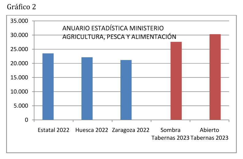 Por último se ha realizado una comparativa con los datos del Anuario Estadística del Ministerio de Agricultura, Pesca y Alimentación estableciendo una comparativa con los datos publicados para los años 2020-2021-2022 obteniendo una media de los mismos. En gráfico 1 se aprecian diferencias entre las dos formas de cultivo aunque cabe destacar que se producen aumentos a mayores horas de insolación, ya que la diferencia en la fila 1 es del 25% y en la fila 5 de un 3% en todo caso con una diferencia en torno al 10% entre ambas formas de cultivo como media.